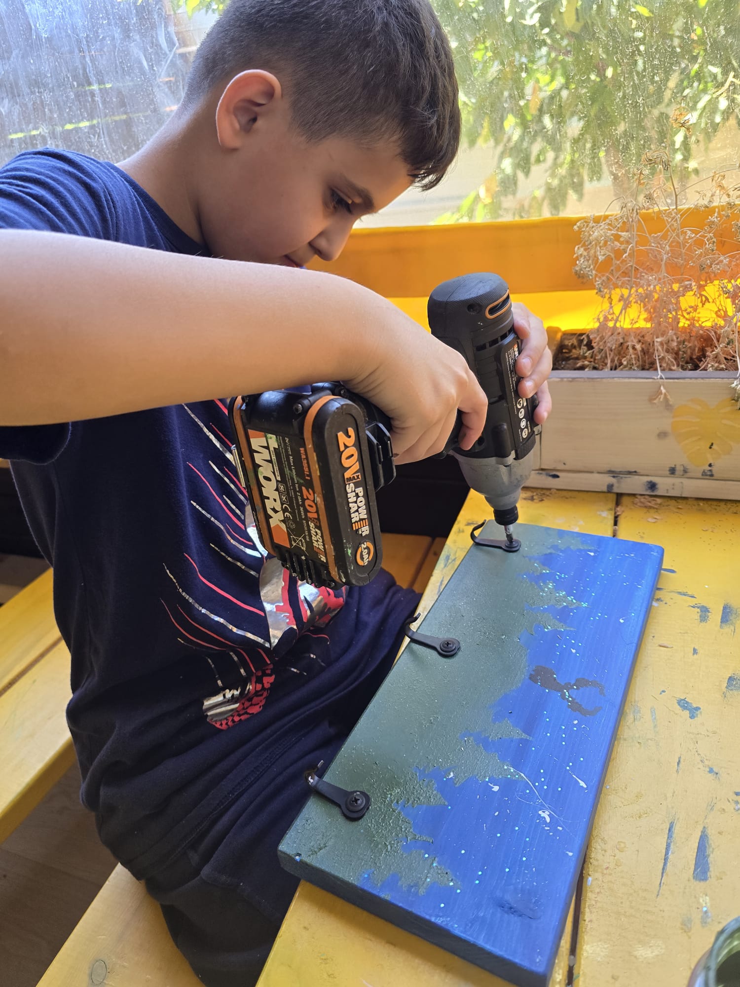 עובדים בציוד מותאם, עם השגחה צמודה והדגמה של כל שלב. החומרים והגימורים ידידותיים לילדים, עם הקפדה על שיוף, הגנה וניקיון סביבתי.